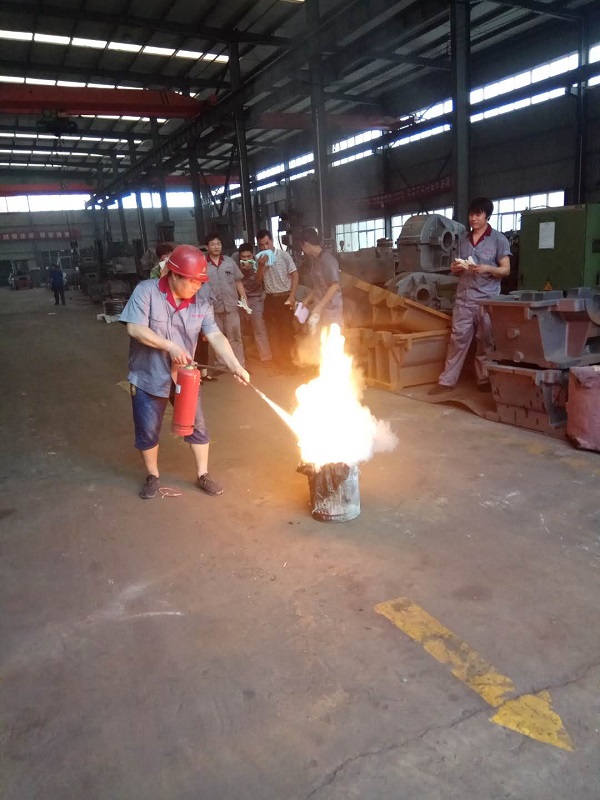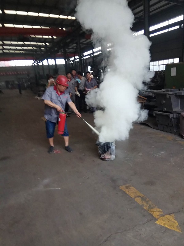 4、安全負責人和車間領導一同為大家展示發生火災時滅火器演示